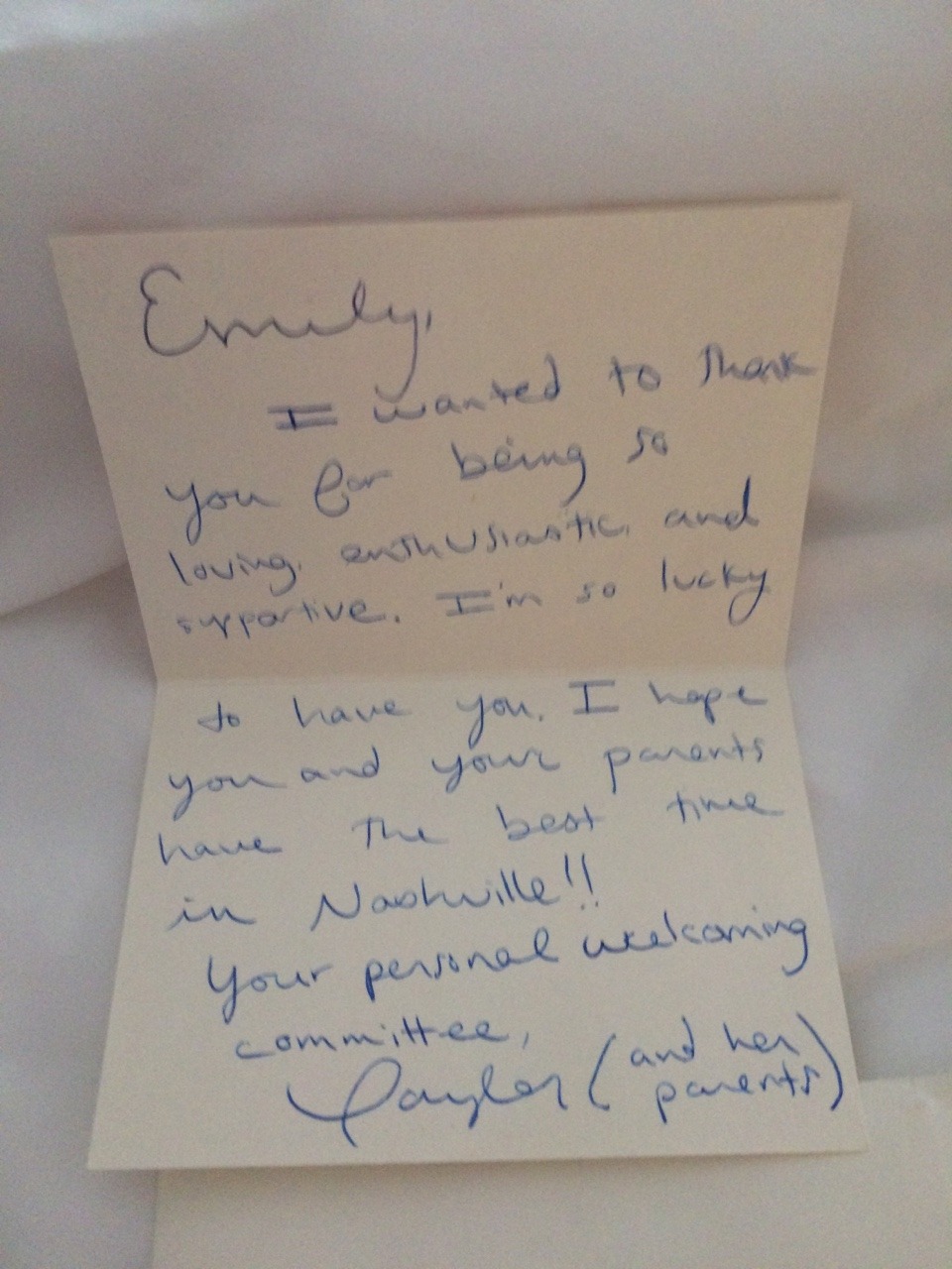 Девушке по имени Эмили посчастливилось получить благодарственное письмо от мисс Свифт, в котором она написала, что была рада знакомству c ее семьей в Нэшвилле.